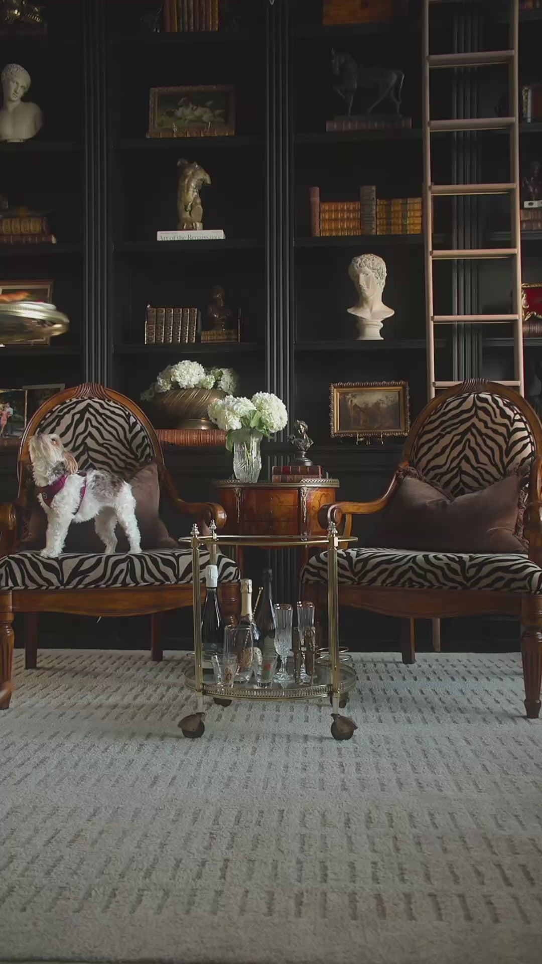 The circular silhouette is adorned with a delicate pierced gallery rail and elegant curved handles, while original caster wheels glide with ease from room to room. Integrated bottle holders on the lower tier keep your finest vintages secure, and the reflective glass adds depth and light to any space it inhabits.