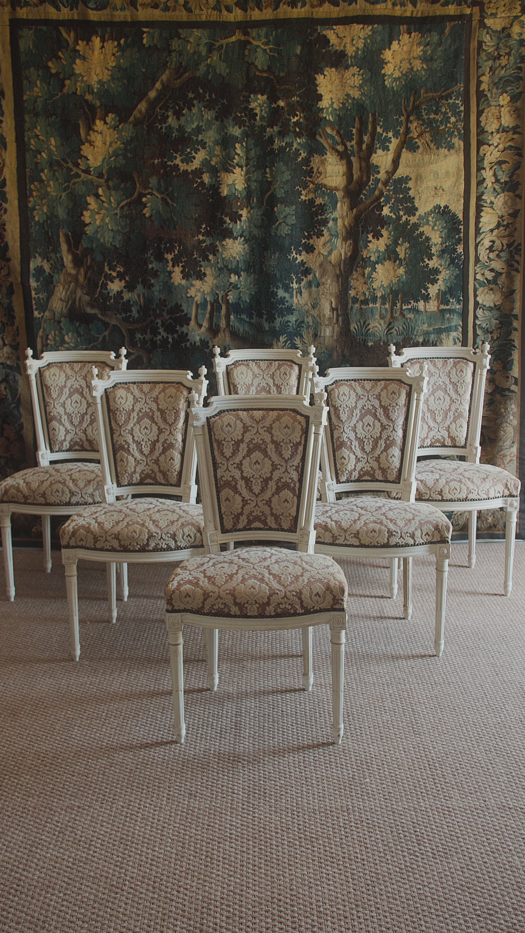 Whether gathered around a dining table or styled as accent seating, these chairs bring graceful French character to any space.